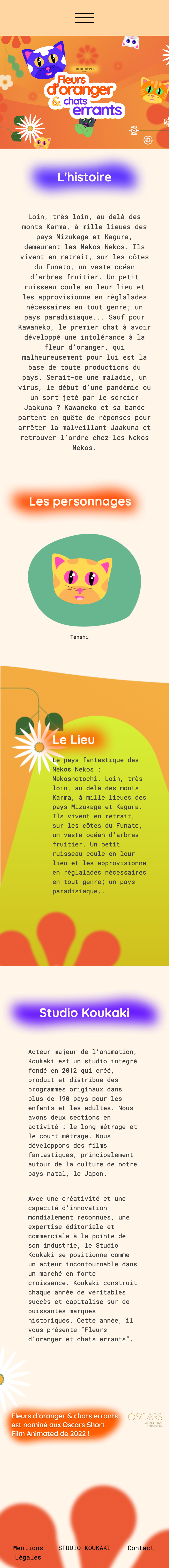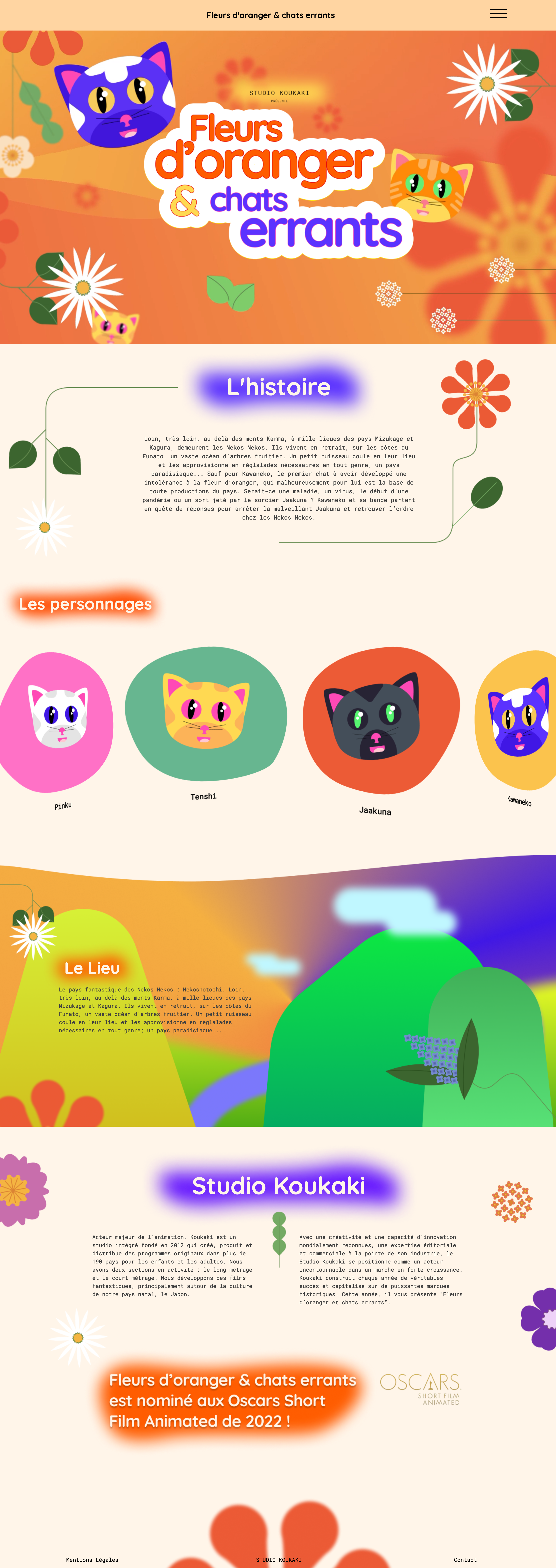 Site internet du studio d’animation Koukaki, dynamisé afin de célébrer le dernier film qui a été nommé aux Oscars du meilleur court-métrage d’animation.