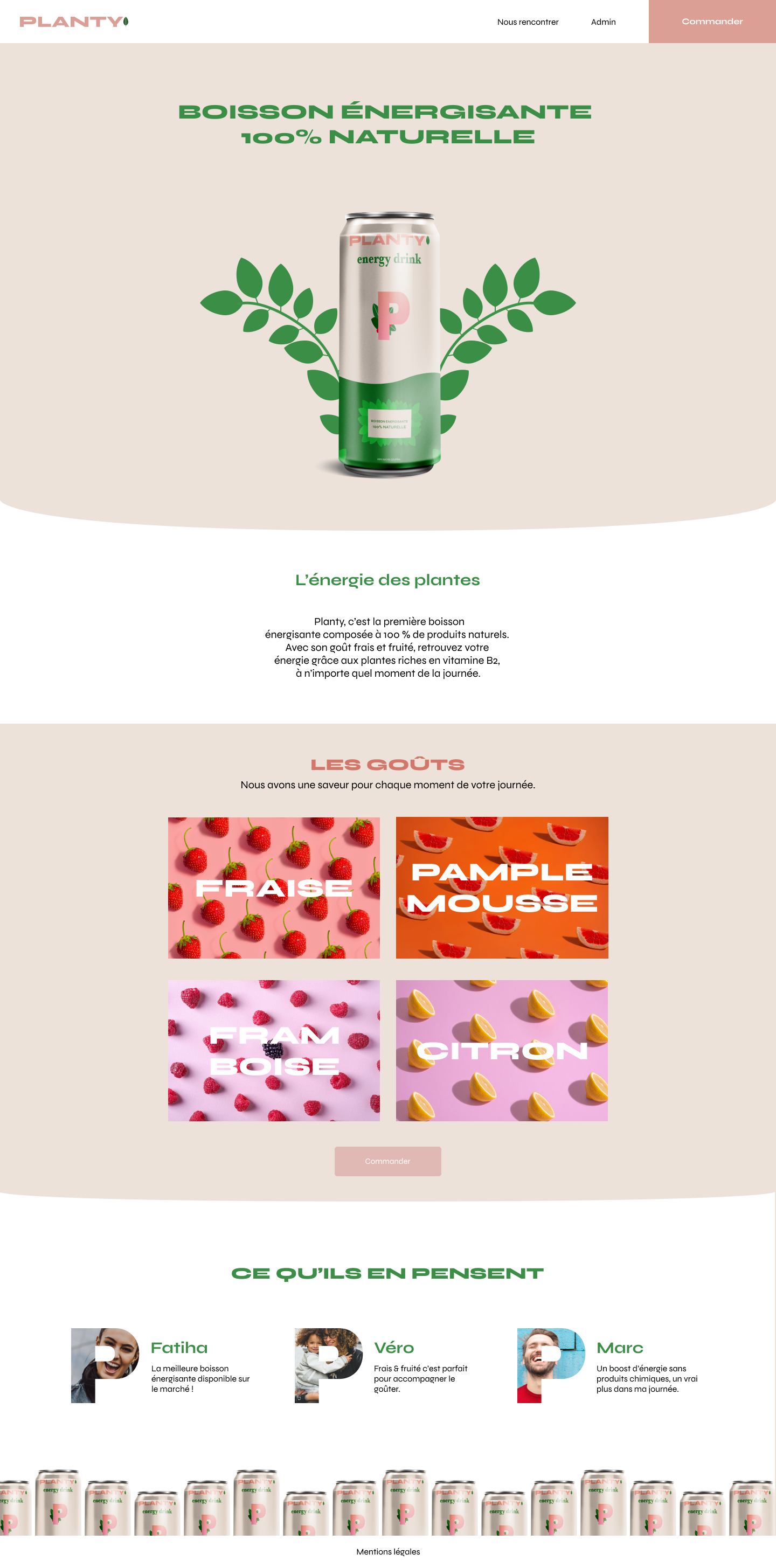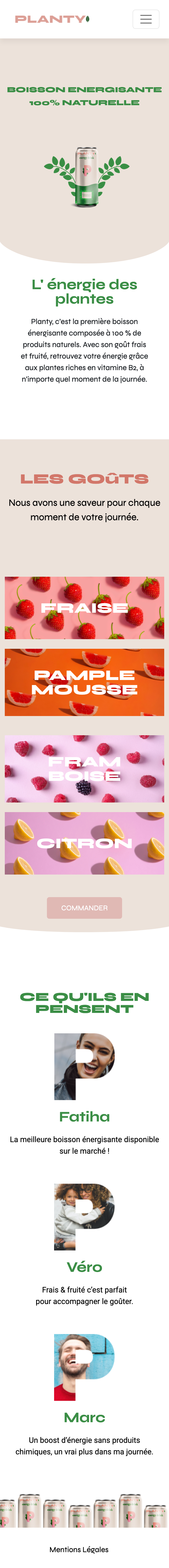 Site vitrine pour Planty, une marque de boissons énergétiques à base de plantes. Sur ce site Planty présente ses produits et initie des précommandes.